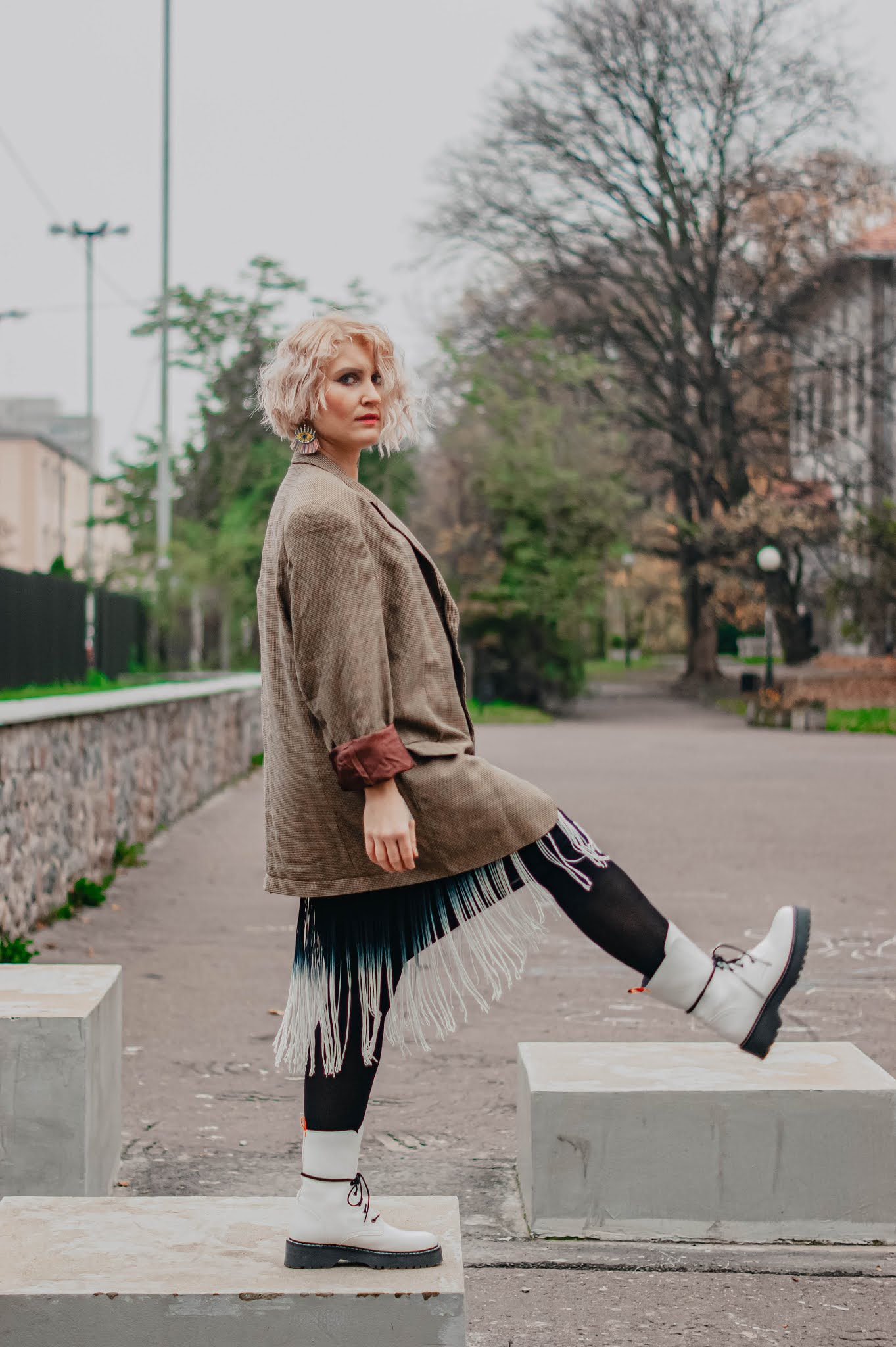 Stylizacja składa się z męskiej marynarki za 2 zł oraz spódnicy, którą mam około 15 lat w swojej szafie. Miłego oglądania!